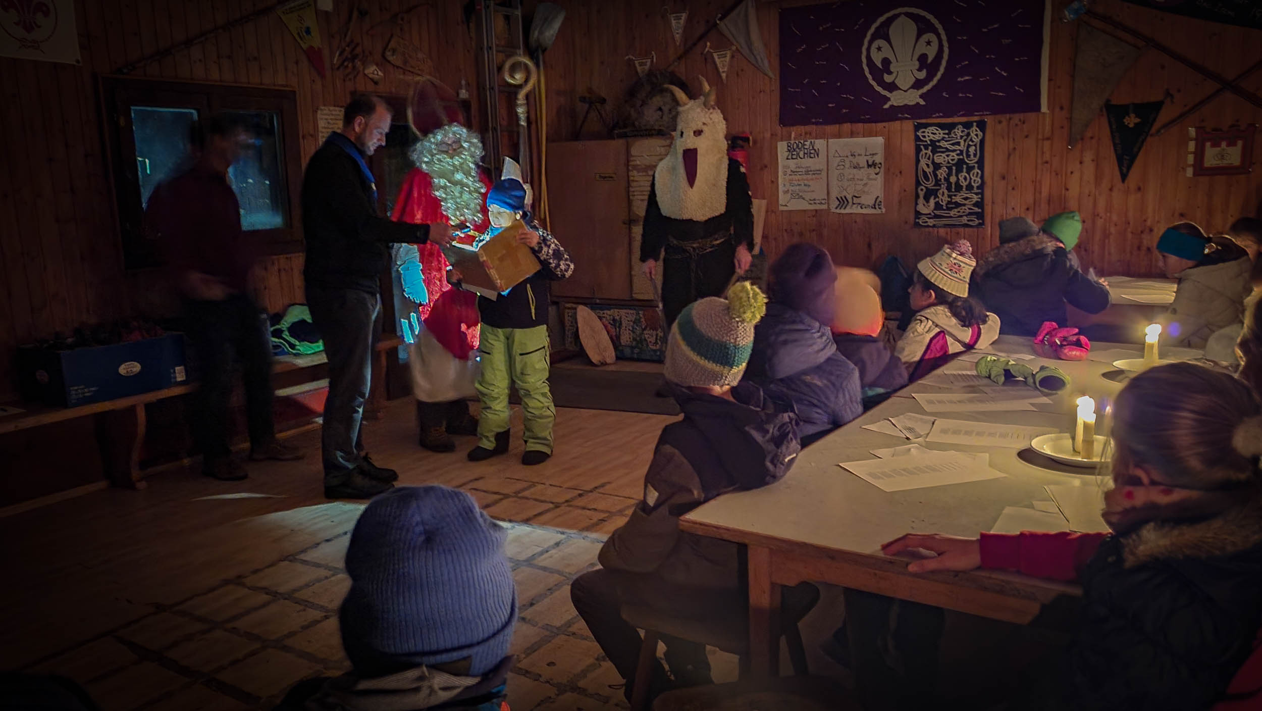 Der Nikolaus hat den Ischler Pfadfindern auch dieses Jahr einen Besuch abgestattet. Begleitet vom Krampus hat er jedem Kind ein rotes Sackerl mit Geschenken überreicht. Gott sei Dank war der Krampus heuer recht brav, nur bei ein paar wenigen Kindern ist er kurz etwas nervös geworden 🙂