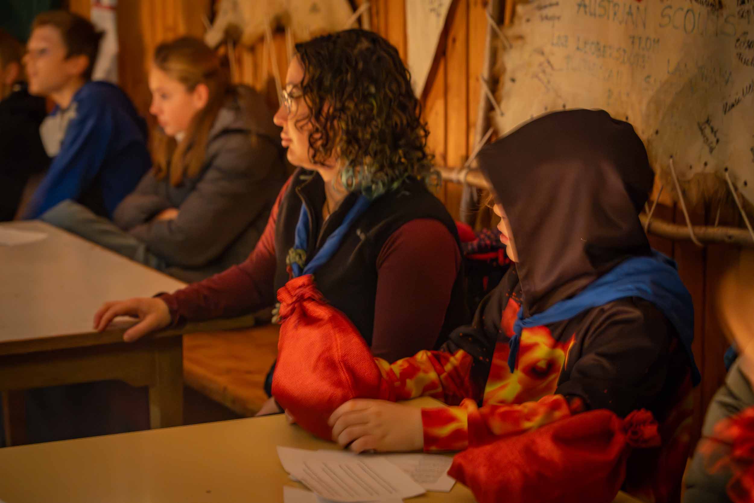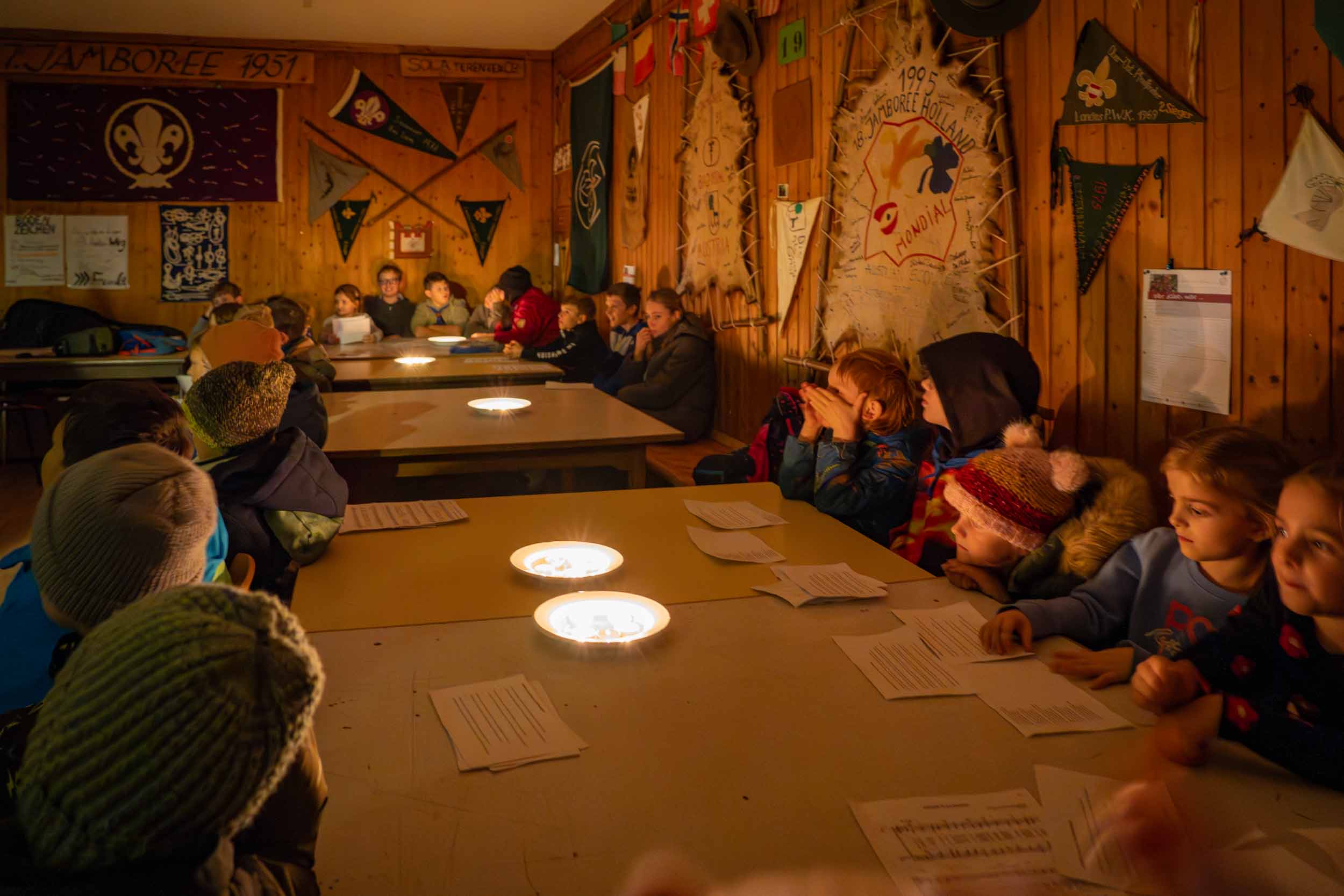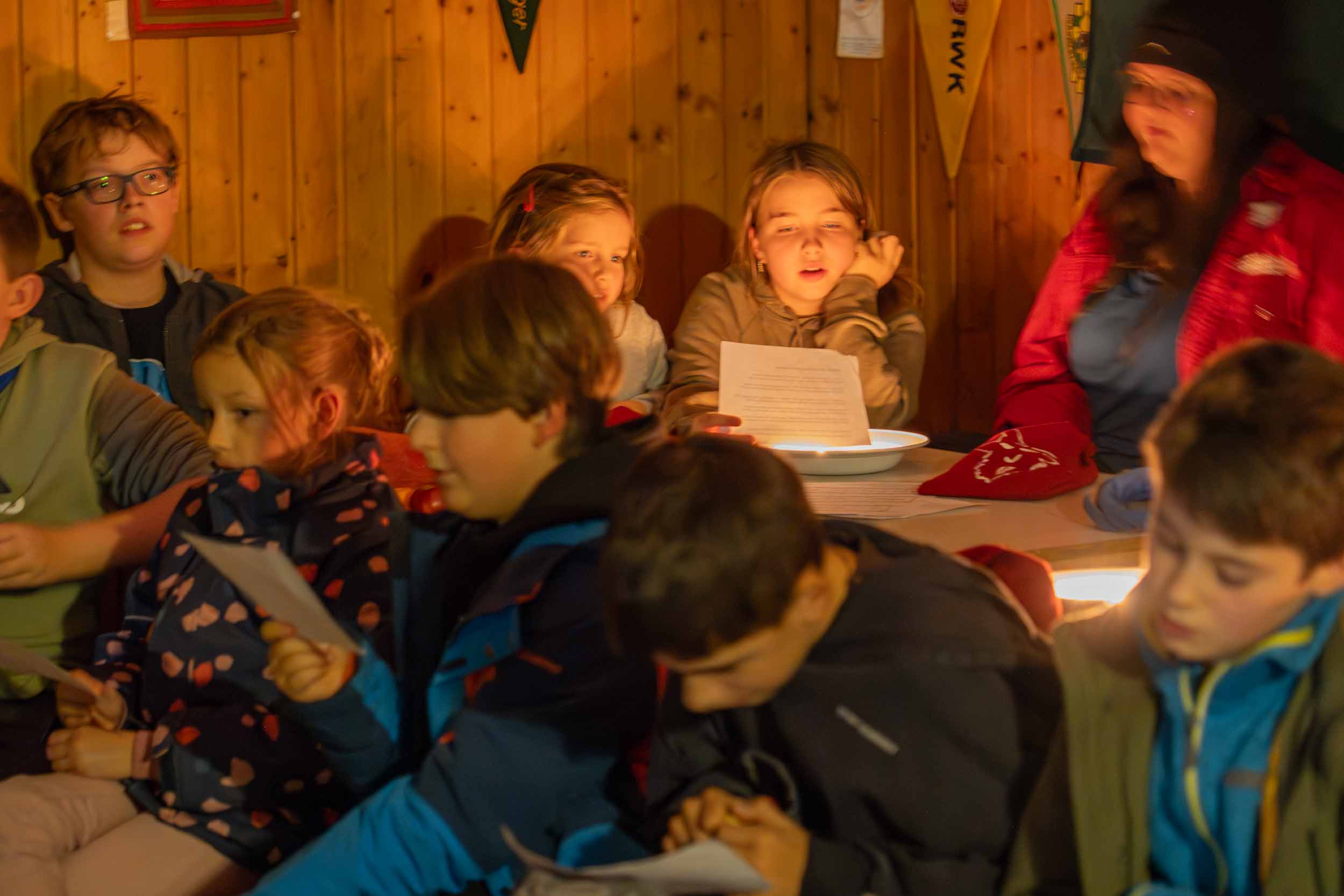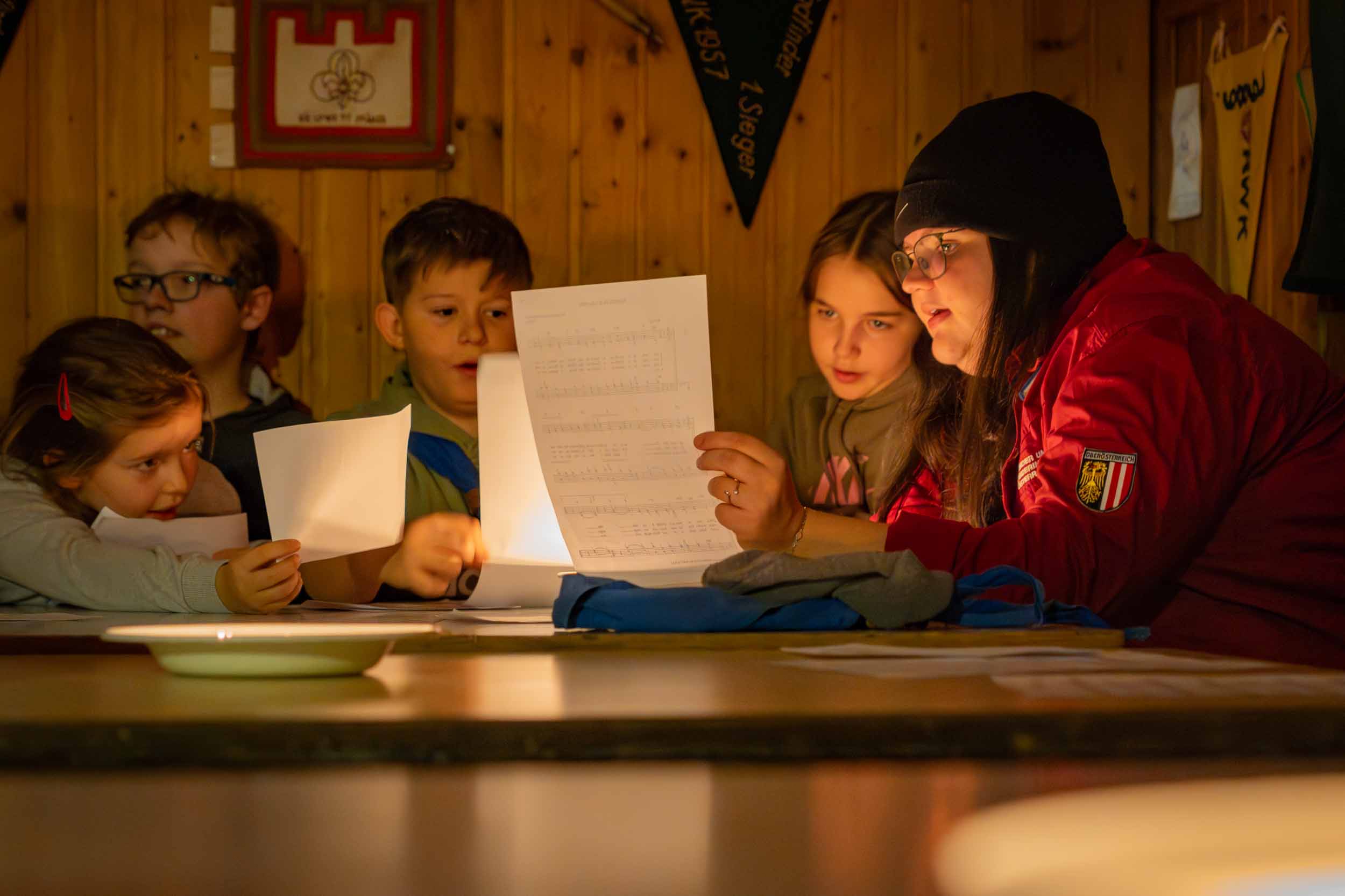 Er hatte jedenfalls sein berühmtes, schweres, goldenes Buch dabei, in dem wirklich ALLES über unsere Gruppe stand. Wer war neu dabei? Wer ist schon ein alter Hase im Pfadfinder-Dschungel? Und – Trommelwirbel – wer hat welche Stärken? Den Nikolaus entgeht nix! Er verteilte nicht nur Lob, sondern schob auch charmante Verbesserungsvorschläge hinterher: „Du bist ein super Knotenbinder, aber gemeinsam seid ihr noch stärker! Pfadfinder halten zusammen, das macht es aus…!“