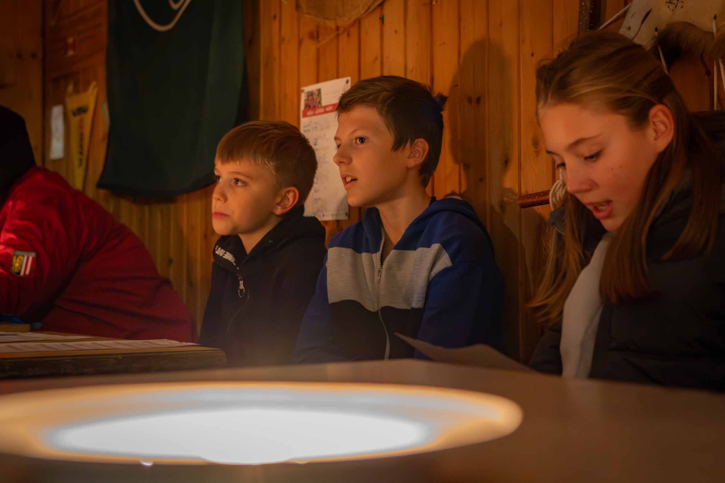 Bevor der hohe Besuch erschien, haben wir unsere Stimmbänder geölt und so kräftig gesungen, dass selbst die Tannenbäume vorm Fenster applaudierten: „Lasst uns froh und munter sein“, „Advent is a Leuchten“ und natürlich unser „Bad Ischler Jamboree-Lied“ hallten durch den Raum, als hätten wir das Burgtheater gemietet. Zu Beginn wäre der Nikolaus fast gestolpert, als ihm unser neuer Boden und die neue Beleuchtung aufgefallen sind…