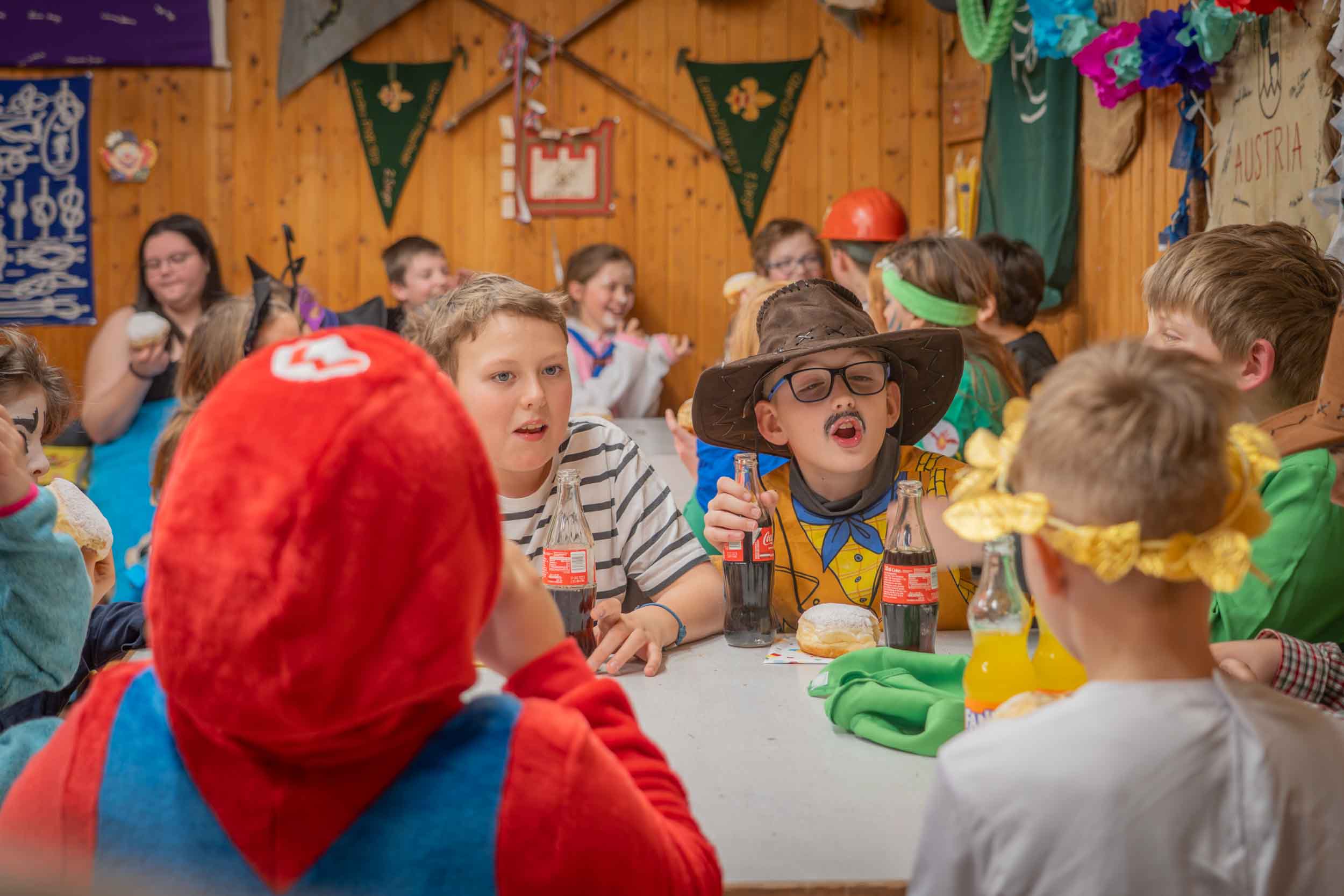 Katzen, Bambis, Geschenkspackerl, Monster aller Art, Rotkäppchen, Piraten und viele mehr haben uns zur fröhlichen Faschingsheimstunde heuer besucht! Die lustigen Spiele haben die WiWö, GuSp und CaEx gemeinsam absolviert, sich gegenseitig erschreckt und dabei viel gelacht. Selbstverständlich durften 45 köstliche Faschingskrapfen nifft fehln… Fo läfft fich daf Pfafinderlefen gut ffmecken… 🙂